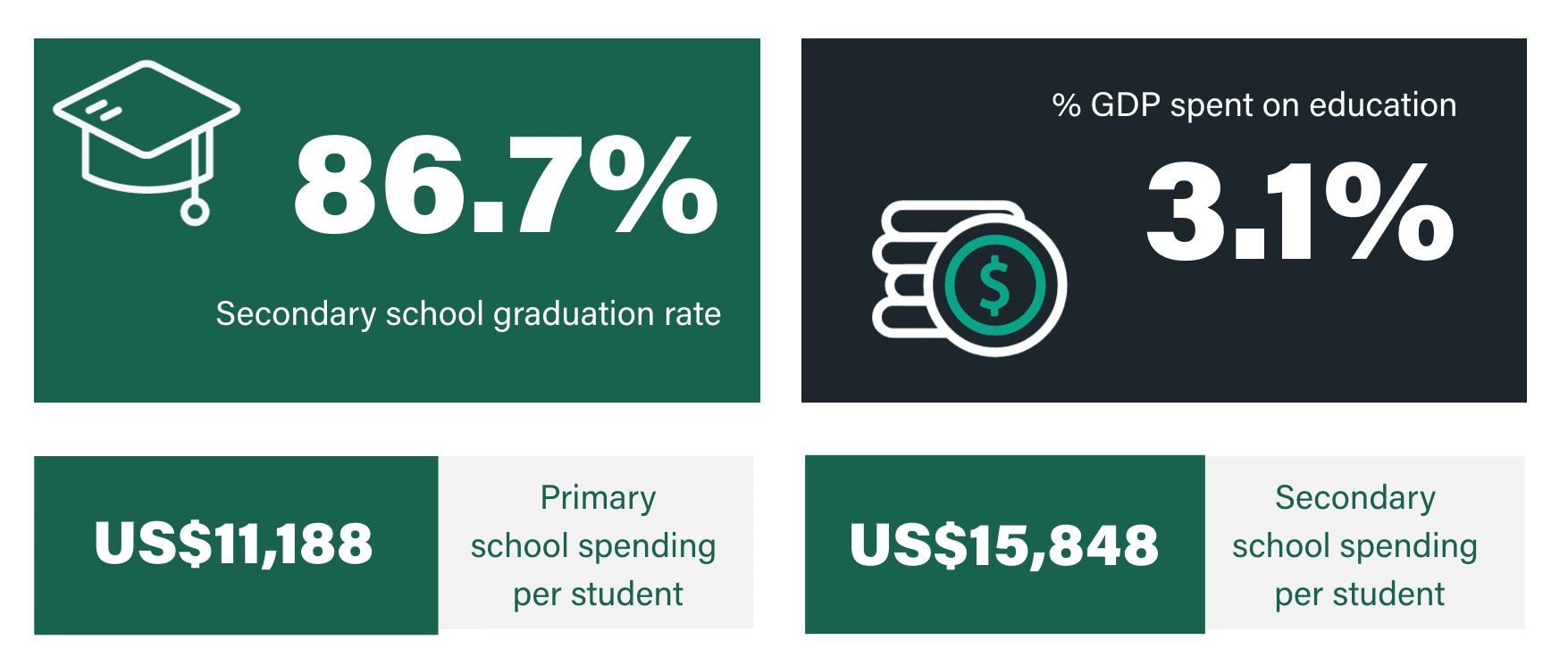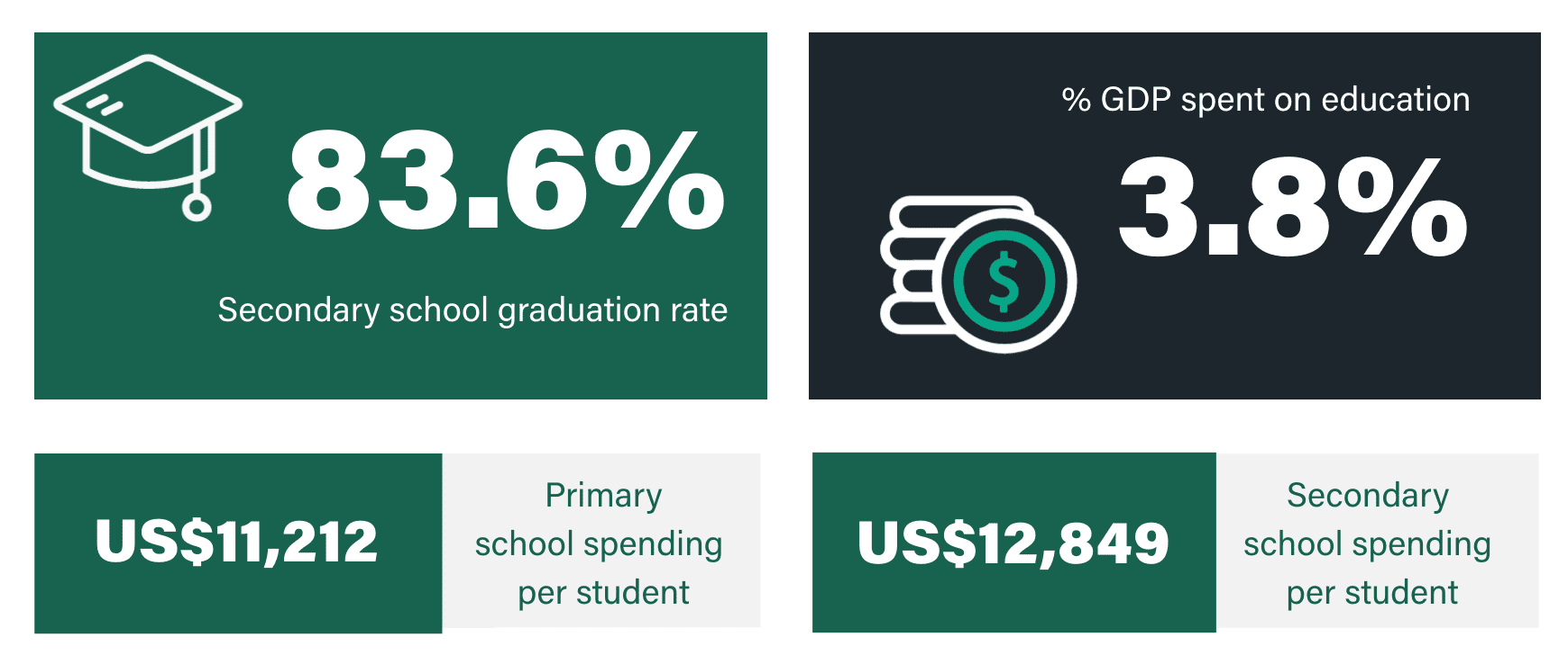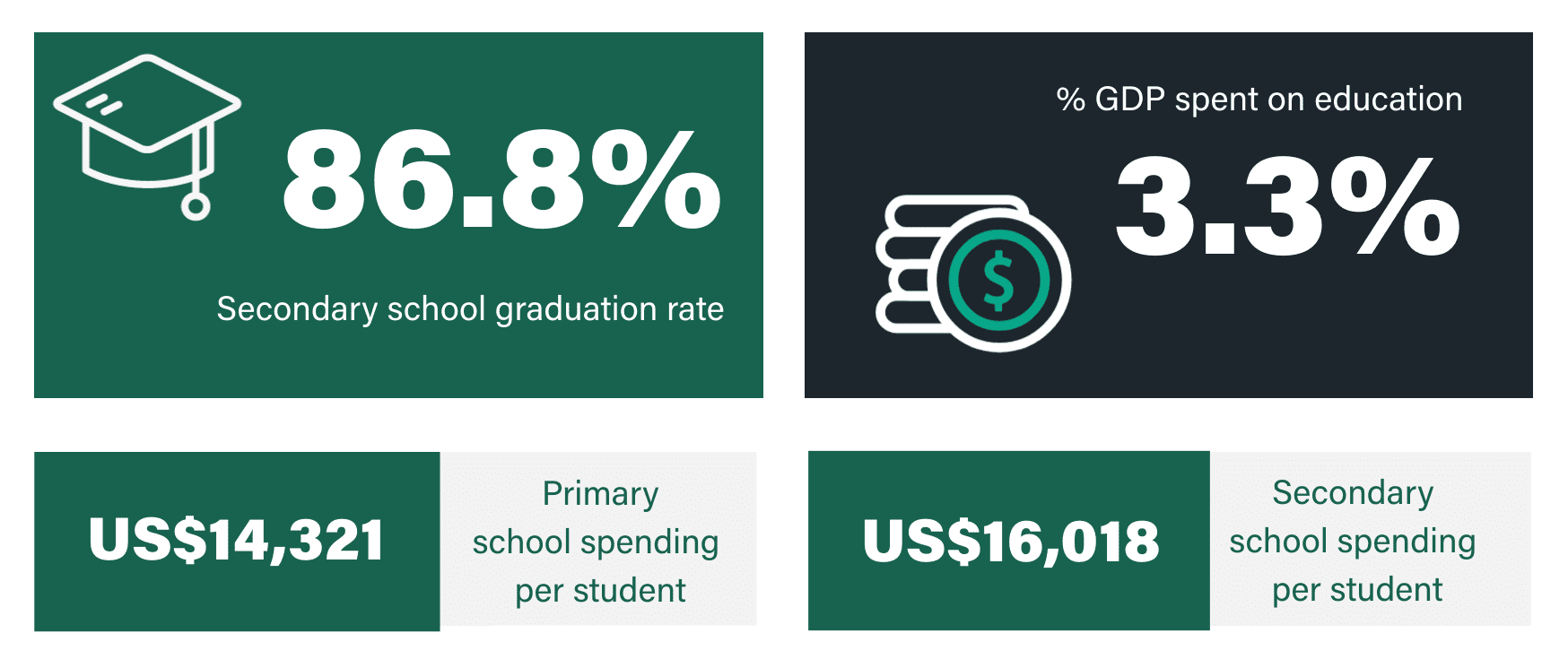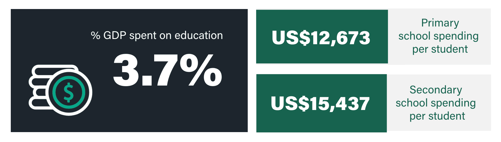 Link to Caryn Greenhough user page Caryn Greenhough Onboarding Team Manager One of the biggest challenges when it comes to moving abroad is getting your child into a good school. In order to find a place in the right primary or secondary school, you’ll not only need to understand how the education system in your new country works, but how good it is. To help you in your search for the right school, we’ve ranked the countries considered best for education. We’ve taken several factors into account, including performance for key subjects, education spending, and the country’s social and economic environment. The 12 countries that make the grade all boast wonderful state education systems that tax-paying expats can take advantage of. With that said, let’s take a look at which country has the best education system. In this article What makes these countries the best countries for education? Which country has the best education system? What makes these places the best countries for education in the world? Levels of education vary between countries around the world. Some countries invest heavily in state education, while others do not. Therefore, the quality of schools can vary considerably between countries. Generally speaking, the quality of education in developed nations is good. However, even among the wealthiest and most developed countries, the quality of education can vary, with those at the higher end of the spectrum offering truly world-leading education. In this article, we’ve ranked the top 12 best countries in the world for quality of education, using data from the Organisation for Economic Co-ordination and Development (OECD) and other sources. We’ve based our decisions on the percentage of population that graduate from secondary education, the percentage of GDP invested in education, and the funding that the average individual child receives at both primary and secondary level. These rankings are for state (public) primary and secondary education only. Which country has the best education system? United States United Kingdom South Korea Denmark Netherlands Germany Ireland Sweden Finland Japan Australia France According to our research these are currently the best countries for education in the world. We have based our rankings on a number of variables including overall secondary graduation rate, spending per student, general syllabi and education outcomes. The final rankings are based on our own interpretation of these statistics. Honourable mentions go to Belgium, Singapore and Iceland, who only narrowly missed the cut. Want more expat content?Subscribe to our fortnightly newsletter! Enter your email address EmailThis field is for validation purposes and should be left unchanged. The United States is the best country in the world for education / GETTY IMAGES 1/ United States GDP US$20.94 trillion POPULATION 331.89 million GDP PER CAPITA, PPP US$63,543 Education overview The United States tops our leaderboard as the best country for education. Being one of the world’s biggest spenders in education, it’s no wonder America produces so many modern-day CEOs, academics and artists. Educational attainment is extremely high in the USA, with around 50% of the population completing tertiary education, and a further 42% having completed upper secondary education. The US school system is typically split into three levels: elementary (taking children from 5 to 11), middle (covering age 11 to 13) and high school (from age 13 to 17). In terms of economy, the USA is on the up after a dip during COVID. US GDP grew 5.7% in 2021, after decreasing 3.4% in 2020. This resulted in an increase of 6.7 million jobs in 2021, with the average annual unemployment rate sitting at around 5.4%. Education in the United States in stats Data: oecd.org Looking for the best countries in the world for university education? Read our guide to the best countries for university education 2/ United Kingdom GDP US$2.708 trillion POPULATION 67.22 million GDP PER CAPITA, PPP US$40,284 Education overview The UK offers a universal public education system, both in primary and secondary schools with the belief that every child regardless of background deserves a good education. Children in the UK have to legally attend school from 5 years old until 16 years old, after which they can choose to go into full-time employment, to college, become an apprentice, or apply to university. Primary and secondary schools follow a ‘national curriculum’ set by the government, ensuring all children receive a good education across a broad range of subjects. The UK economy is highly developed, providing job opportunities for all levels of school leavers. The rate of unemployment in the UK is very low at just 4.3%, while around 65% of graduates and 77% of postgraduates can expect to find their way into highly-skilled occupations. The government also imposes a minimum wage, forcing employers to pay all workers a salary considered enough to live on. Education in the United Kingdom in stats Data: oecd.org Interested in getting an international career after your studies? We look at the top 10 professions for expats working abroad Students in South Korea are known for being extremely competitive / GETTY IMAGES 3/ South Korea GDP US$1,631 trillion POPULATION 51.78 million GDP PER CAPITA, PPP US$31,489 Education overview South Korea is – to put it bluntly – obsessed with education. There’s even a term for it in Korea: “education fever.” Students in South Korea are known for being extremely competitive, which is why it should come as no surprise that the country ranks so highly worldwide. South Korea can also boast of having the world’s most educated population, with 84% of people having completed high school education and 71.5% enrolling in university. Economically, South Korea has experienced a decade of rapid economic growth and is now considered a highly industrialised economy led by the technology sectors – electro