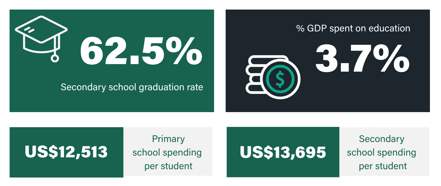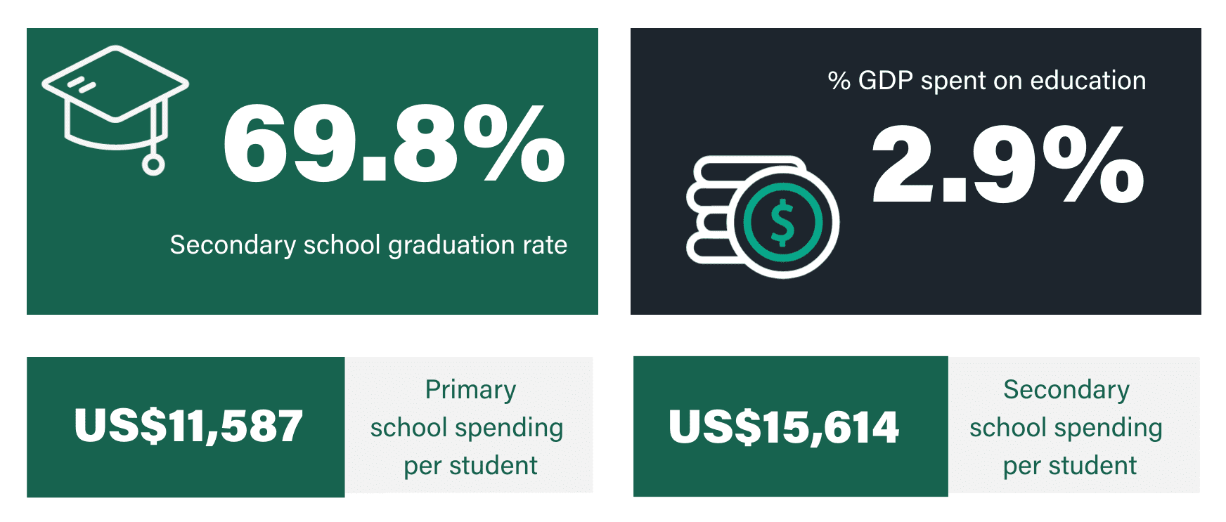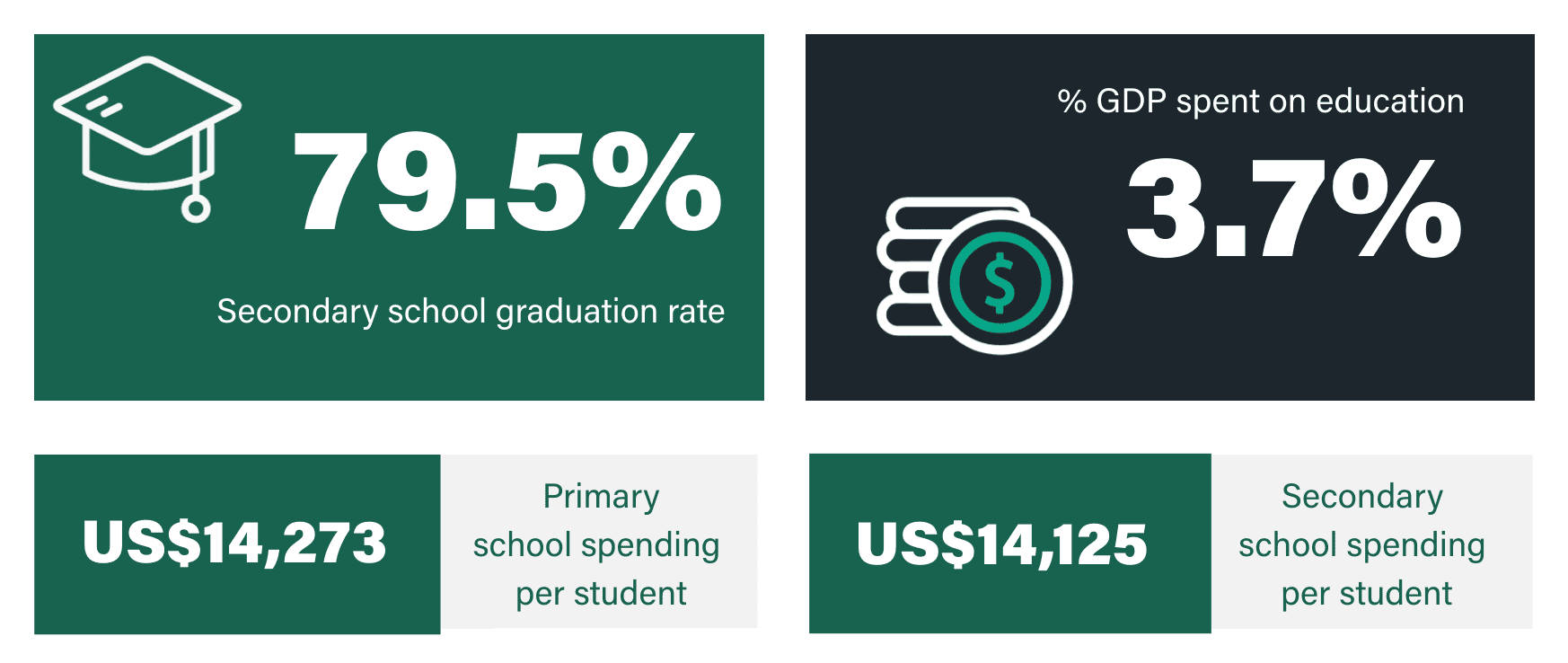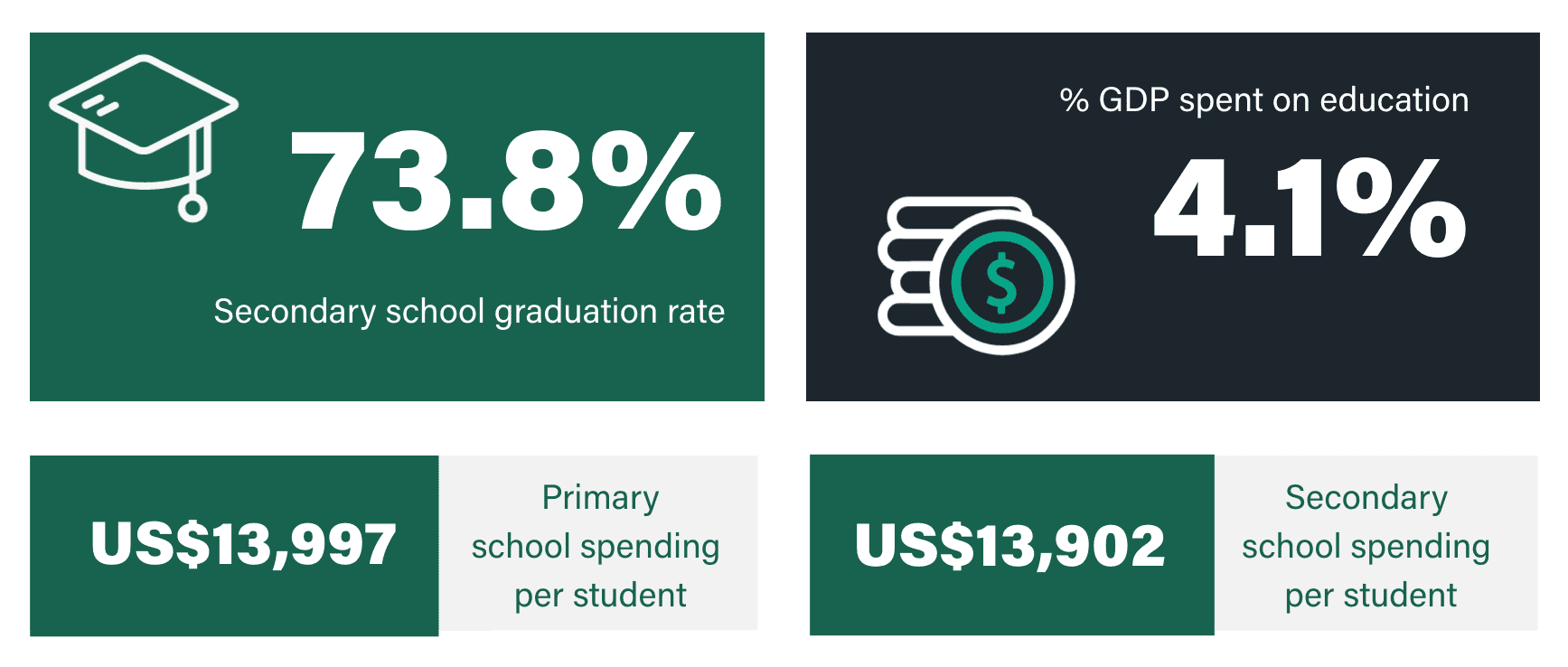 Link to Caryn Greenhough user page Caryn Greenhough Onboarding Team Manager One of the biggest challenges when it comes to moving abroad is getting your child into a good school. In order to find a place in the right primary or secondary school, you’ll not only need to understand how the education system in your new country works, but how good it is. To help you in your search for the right school, we’ve ranked the countries considered best for education. We’ve taken several factors into account, including performance for key subjects, education spending, and the country’s social and economic environment. The 12 countries that make the grade all boast wonderful state education systems that tax-paying expats can take advantage of. With that said, let’s take a look at which country has the best education system. In this article What makes these countries the best countries for education? Which country has the best education system? What makes these places the best countries for education in the world? Levels of education vary between countries around the world. Some countries invest heavily in state education, while others do not. Therefore, the quality of schools can vary considerably between countries. Generally speaking, the quality of education in developed nations is good. However, even among the wealthiest and most developed countries, the quality of education can vary, with those at the higher end of the spectrum offering truly world-leading education. In this article, we’ve ranked the top 12 best countries in the world for quality of education, using data from the Organisation for Economic Co-ordination and Development (OECD) and other sources. We’ve based our decisions on the percentage of population that graduate from secondary education, the percentage of GDP invested in education, and the funding that the average individual child receives at both primary and secondary level. These rankings are for state (public) primary and secondary education only. Which country has the best education system? United States United Kingdom South Korea Denmark Netherlands Germany Ireland Sweden Finland Japan Australia France According to our research these are currently the best countries for education in the world. We have based our rankings on a number of variables including overall secondary graduation rate, spending per student, general syllabi and education outcomes. The final rankings are based on our own interpretation of these statistics. Honourable mentions go to Belgium, Singapore and Iceland, who only narrowly missed the cut. Want more expat content?Subscribe to our fortnightly newsletter! Enter your email address EmailThis field is for validation purposes and should be left unchanged. The United States is the best country in the world for education / GETTY IMAGES 1/ United States GDP US$20.94 trillion POPULATION 331.89 million GDP PER CAPITA, PPP US$63,543 Education overview The United States tops our leaderboard as the best country for education. Being one of the world’s biggest spenders in education, it’s no wonder America produces so many modern-day CEOs, academics and artists. Educational attainment is extremely high in the USA, with around 50% of the population completing tertiary education, and a further 42% having completed upper secondary education. The US school system is typically split into three levels: elementary (taking children from 5 to 11), middle (covering age 11 to 13) and high school (from age 13 to 17). In terms of economy, the USA is on the up after a dip during COVID. US GDP grew 5.7% in 2021, after decreasing 3.4% in 2020. This resulted in an increase of 6.7 million jobs in 2021, with the average annual unemployment rate sitting at around 5.4%. Education in the United States in stats Data: oecd.org Looking for the best countries in the world for university education? Read our guide to the best countries for university education 2/ United Kingdom GDP US$2.708 trillion POPULATION 67.22 million GDP PER CAPITA, PPP US$40,284 Education overview The UK offers a universal public education system, both in primary and secondary schools with the belief that every child regardless of background deserves a good education. Children in the UK have to legally attend school from 5 years old until 16 years old, after which they can choose to go into full-time employment, to college, become an apprentice, or apply to university. Primary and secondary schools follow a ‘national curriculum’ set by the government, ensuring all children receive a good education across a broad range of subjects. The UK economy is highly developed, providing job opportunities for all levels of school leavers. The rate of unemployment in the UK is very low at just 4.3%, while around 65% of graduates and 77% of postgraduates can expect to find their way into highly-skilled occupations. The government also imposes a minimum wage, forcing employers to pay all workers a salary considered enough to live on. Education in the United Kingdom in stats Data: oecd.org Interested in getting an international career after your studies? We look at the top 10 professions for expats working abroad Students in South Korea are known for being extremely competitive / GETTY IMAGES 3/ South Korea GDP US$1,631 trillion POPULATION 51.78 million GDP PER CAPITA, PPP US$31,489 Education overview South Korea is – to put it bluntly – obsessed with education. There’s even a term for it in Korea: “education fever.” Students in South Korea are known for being extremely competitive, which is why it should come as no surprise that the country ranks so highly worldwide. South Korea can also boast of having the world’s most educated population, with 84% of people having completed high school education and 71.5% enrolling in university. Economically, South Korea has experienced a decade of rapid economic growth and is now considered a highly industrialised economy led by the technology sectors – electro