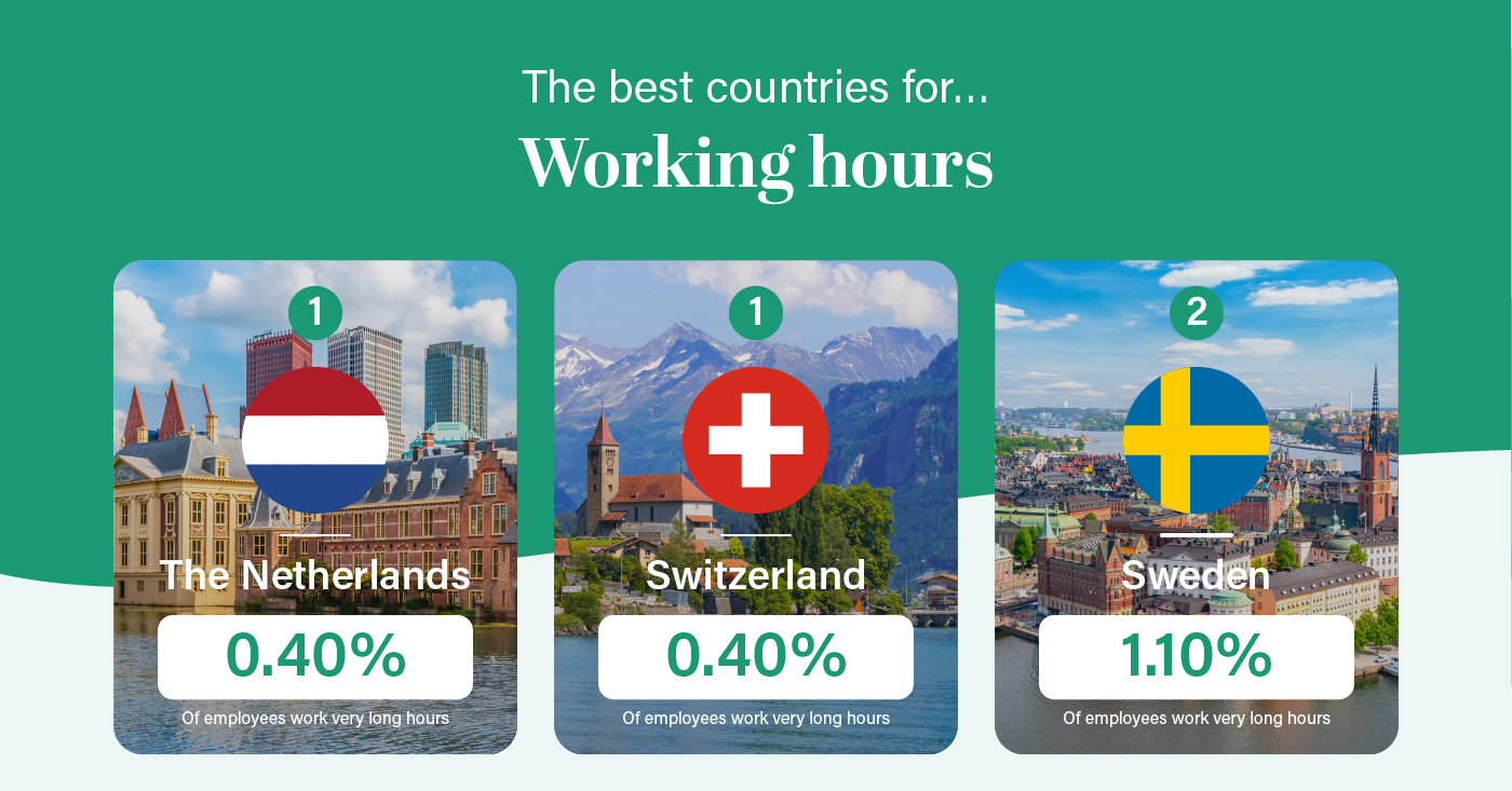 Link to William Cooper user page William Cooper Marketing Director 23 May 2024 Thinking of moving abroad? Wherever you choose to move, prioritising your mental health has never been more important. This is easier in some places than in others, and depends on a number of factors, including work/life balance, free time to spend with family and friends, how much access you have to nature and how much the government invests in mental health services. With that in mind, we’ve been around the world to find the countries that we consider the best for mental health. In this article What are the countries with the best mental health in the world? How have we chosen the countries with the best mental health? Where are the best places to live for mental health? Which countries have the best work-life balance? Which countries spend the most on mental healthcare in the world? Fishing port in Smogen, Sweden / GETTY IMAGES What are the countries with the best mental health in the world? We’ve focused on 35 developed nations that are popular with expats, using a variety of data sources to paint a picture of which countries you are most likely to enjoy a peaceful, positive lifestyle with good access to mental health resources. Countries with the best mental health in the world Sweden Luxembourg Norway Sweden was our number one country for mental health, retaining the top spot for a second year running. Luxembourg and Norway are runners up, with Latvia and Germany also making the top five. Finland, which came third in 2023, slipped all the way to eighth in the world in 2024. This year, we’ve also welcomed nine new countries to the leaderboard: Spain, Luxembourg and Denmark all come straight into the top 10, while Portugal, Slovakia, Hungary, Belgium, Austria and the United States also make the list. The biggest fall from 2023 is Australia, which goes from 10th in 2023 all the way to 31st in 2024. It’s important to say that no country is perfect when it comes to mental health, and mental health problems can still affect you even in the happiest of countries. This is especially true if you experience culture shock. However, if a country’s attitude to mental wellbeing is important to you, you are likely to enjoy a great lifestyle and a positive state of mind in many of these countries. Many of us experience mental health problems in our lives That’s why our plans cover mental health consultations and treatment How have we chosen the countries with the best mental health in the world? We analysed 35 countries in the Organization for Economic Cooperation and Development (OECD) according to a number of factors relating to positive mental health. These include: The percentage of people in the country who work long hours (50 hours per week or more) The average number of hours people have in the day to devote to sleep, leisure and personal care The total area of designated green spaces within the country The percentage of government healthcare expenditure dedicated to mental health Each country was given a ranked score for its work/life balance, leisure time, availability of green spaces and percentage of government health spending on mental health services. The average of these ranks contributed to that country’s overall score and position on our list of the best countries for mental health. Want more expat content?Subscribe to our fortnightly newsletter! Enter your email address CommentsThis field is for validation purposes and should be left unchanged. Where are the best places to live for mental health? Rank Country Long Hours Leisure Time Green Spaces Total Govt Health Spend (US$) Govt Mental Health Spend Rank Score 2023 Rank 1 Sweden 0.9% 15.3 68.7 $6,438 10 31.25 = 2 Luxembourg 2.8% 15.1 68.7 $6,438 10 26.75 New 3 Norway 1.4% 15.7 33.5 $7,771 7.2 26 +5 4 Latvia 1.6% 15.1 54.9 $3,445 5.9 6.40 +9 = Germany 3.9% 15.6 32.7 $8,011 11 25.5 -3 6 Spain 2.5% 15.7 32.2 $4,4432 5 24.75 New 7 The Netherlands 0.3% 15.4 11 $6,729 10.65 24.5 -2 8 Finland 3.6% 15.2 73.7 $5,599 3.86 23.75 -5 9 France 7.7% 16.2 31.7 $6,630 12.91 23.25 -5 10 Italy 3.3% 16.5 32.5 $4,291 5 23 -4 = Estonia 2.2% 15 57 $3,103 5.78 23 +2 12 Slovakia 4.2% 15.1 40.1 $2,756 6.1 22.5 New = Slovenia 5.6% 15 61.4 $4,114 8 22.5 -3 14 Canada 3.3% 14.6 39.5 $6,319 7.2 20 -7 15 Hungary 1.5% 15.1 22.5 $2,840 5.1 19.75 New 16 Switzerland 0.4% 15 32.2 $8,049 2.5 19 = 17 Denmark 1.1% 15.7 15.7 $8,049 2.5 19 = = New Zealand 14% 14.9 37.6 $6,061 10 18.25 = 19 Portugal 5.6% 15 36.2 $4,162 5.24 17.5 New 20 Czech Republic 4.5% 15.1 37.4 $4,512 2.91 16.75 -6 21 Belgium 4.3% 15.5 22.8 $6,600 1.9 15.75 New 22 Poland 4.2% 14.7 31 $2,973 5.08 15.25 +2 23 Greece 4.5% 15 30.3 $3,015 4.43 15 -8 24 Brazil 5.6% 14.6 59.3 $1,573 2.38 14.5 -2 25 Ireland 4.7% 14.5 11.4 $6,047 8.3 13.75 -14 26 United Kingdom 10.8% 14.9 13.2 $5,493 7.9 13.25 -5 27 South Korea 19.7% 14.8 64.3 $4,570 1.9 12.5 -7 = Japan 15.7% 14.1 68.4 $5,251 4.94 12.5 -8 29 Austria 5.3% 14.5 47.3 $7,275 0* 12.25 New 30 United States 10.4% 14.6 33.9 $12,555 2.4 11.25 New 31 Australia 12.5% 14.4 17.4 $6,372 7.64 11 -21 32 Iceland 11.7% 14.5 0.5 $5,314 8.69 10.5 -6 33 Chile 7.7% 14 23.6 $2,699 2.78 7.75 -8 34 South Africa 15.4% 14.2 14 $1,184 5 7 -16 35 Israel 14.1% 14.3 6.5 $3,444 1.75 3.25 -12 *Austria does not differentiate mental health spend from other healthcare spending in its accounting. Long hours – % working 50+ hours per week Leisure time – hours per day Green spaces – % of land area Total government health spend – per capita Government mental heath spend – % of total health spend Show MoreShow Less Mental health is as important as physical health We share some top tips for mental health for expats What are the top 3 countries with the best mental health in the world? 1/ Sweden Positive mental wellbeing score: 31.25 out of 35 Sweden was named the best country for mental health in 2023, and in 2024 retained the top spot. Sweden scores consistently high in all four of the major categori