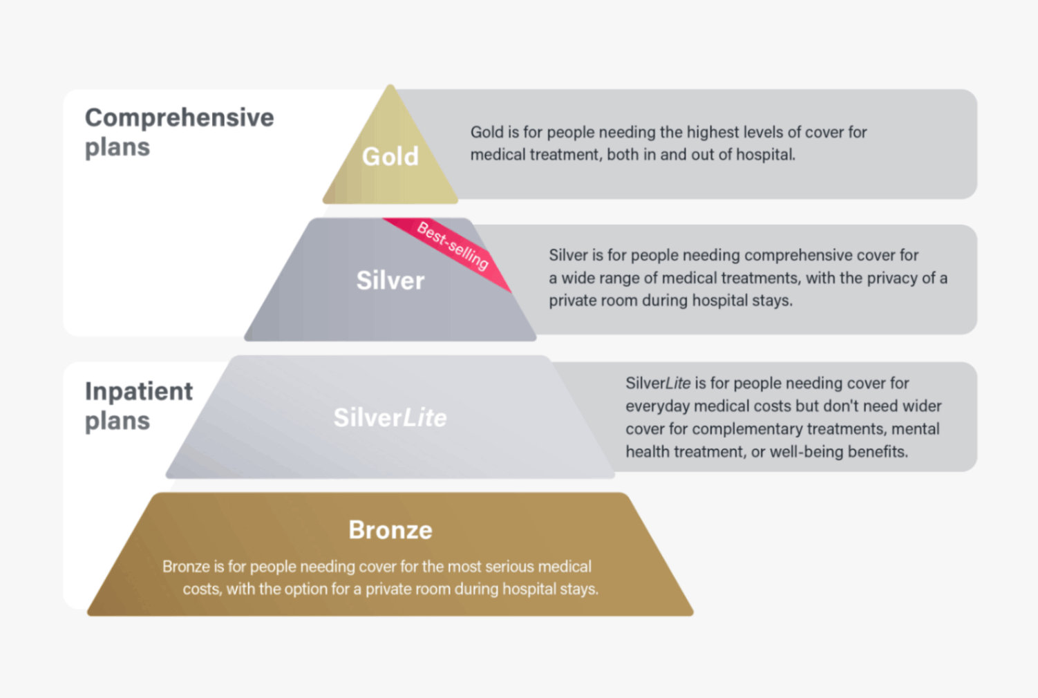 The comprehensive plans (Silver and Gold) give you a wider range of cover for health conditions and treatments, and the benefits generally come with higher annual limits.